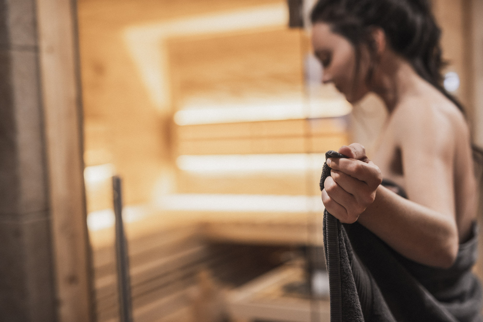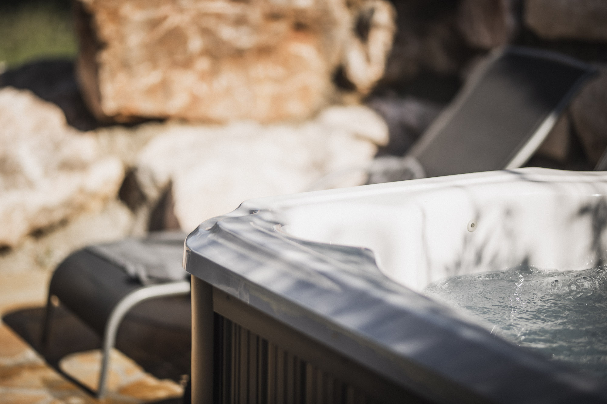 Entspannung pur in Sauna und Außenwhirlpool mit beeindruckendem Bergpanorama.
